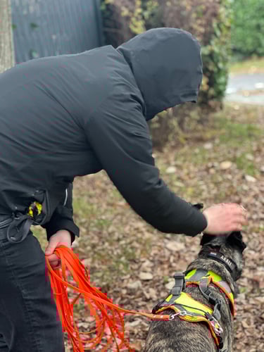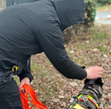 Le mantrailing est avant tout un travail d’équipe. Le chien guide grâce à son flair, tandis que le maître apprend à l’accompagner sans l’influencer.